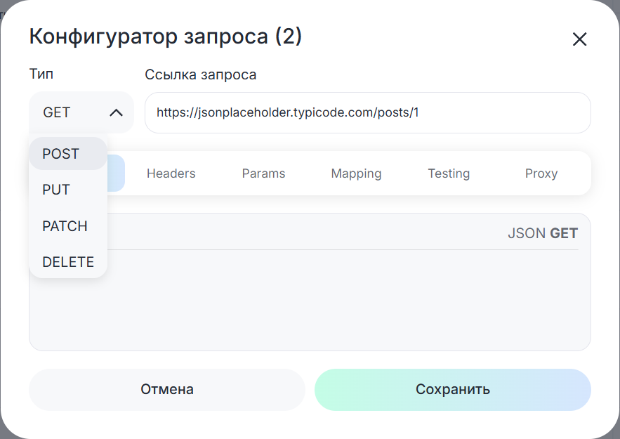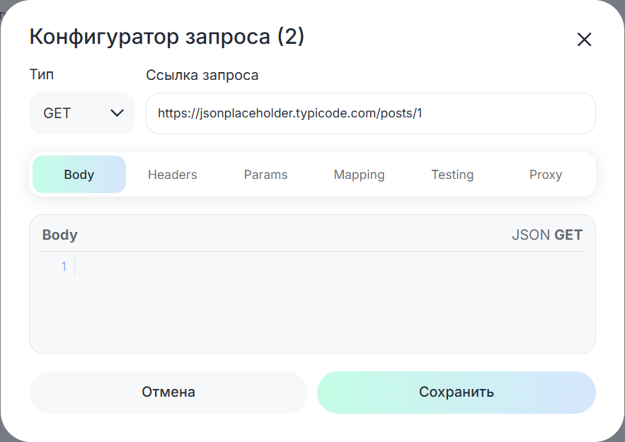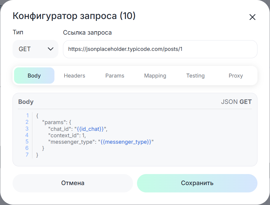 4. Вставьте адрес, на который будет отправлен запрос в поле «Ссылка запроса». Можно использовать переменные.