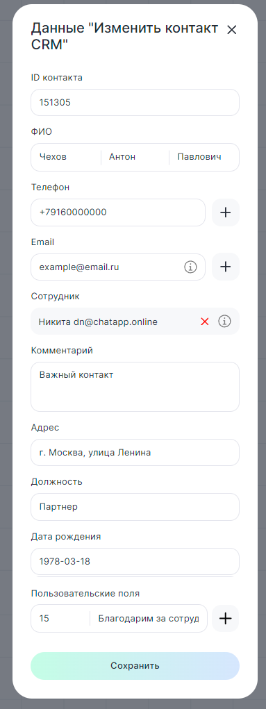 Блок может изменить контакт в CRM-системах:
