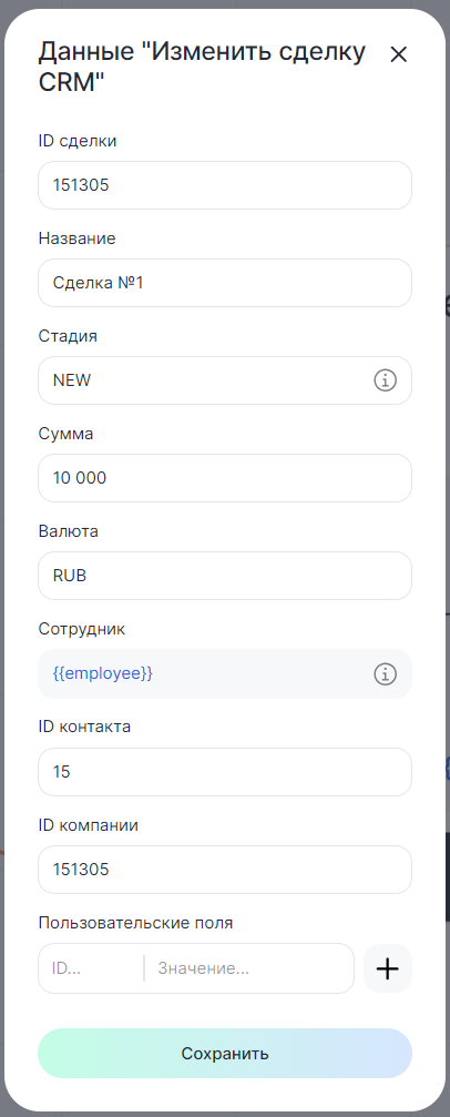 Изменение сделки CRM через сценарий бота