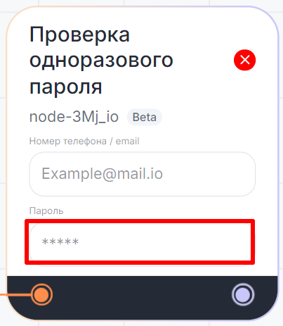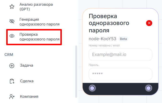 - В Редакторе сценариев добавьте блок «Проверка одноразового пароля» на рабочую область.
