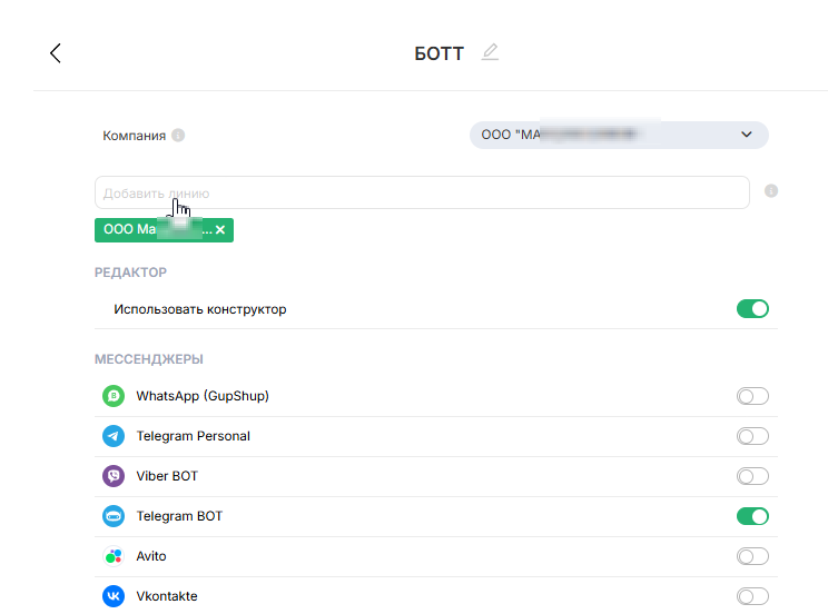 4. Бот установлен на необходимую линию в данной компании.