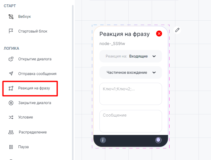 Настройка блока «Реакция на фразу»#