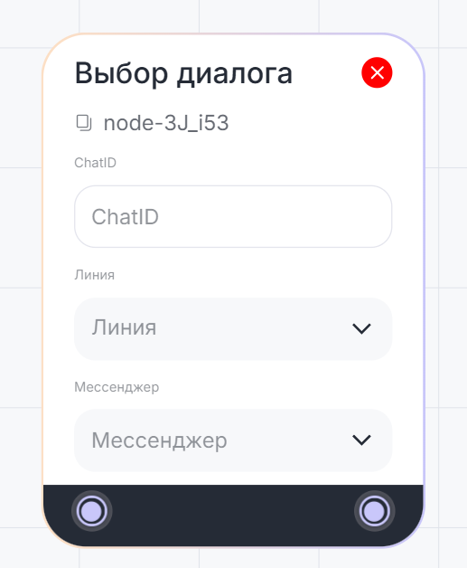 Блок «Выбор диалога» позволяет выбрать уже существующий чат для того, чтобы дальнейшее выполнение сценария происходило именно в нём.