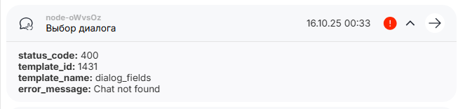 Диалоговый сценарий: если чат не найден, лог ошибки отобразится в текущем диалоге, из которого выполнялся сценарий.