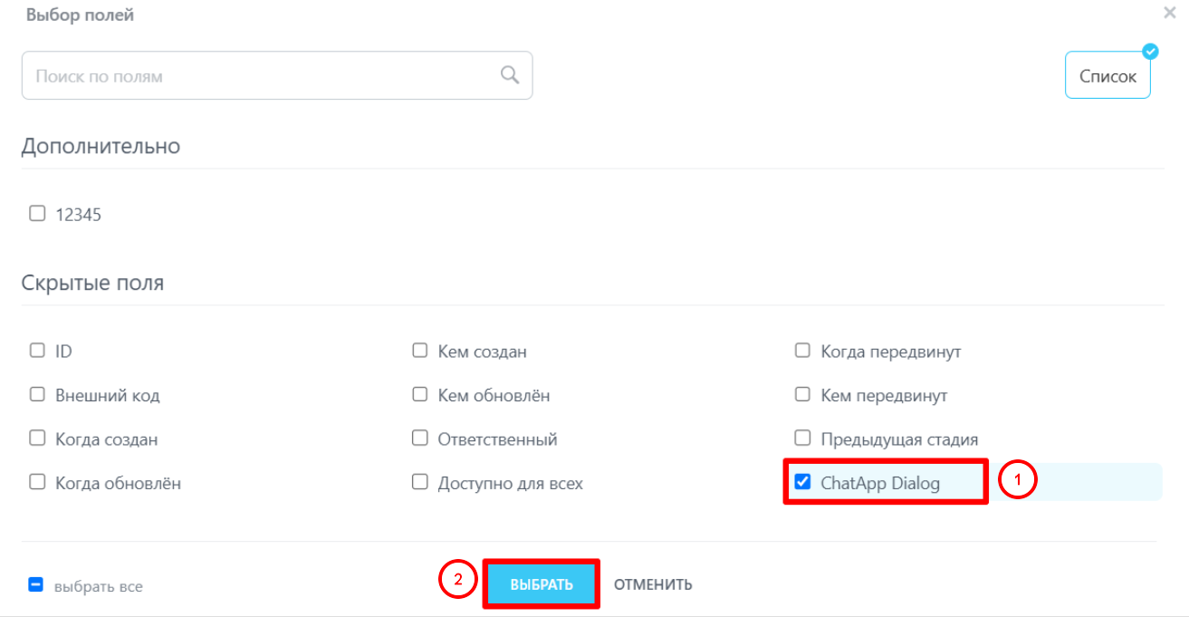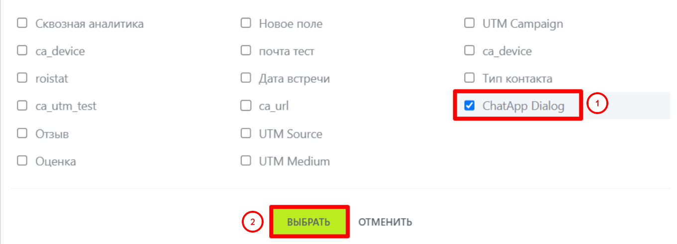 Кнопка «ChatApp Dialog» в поле карточки CRM