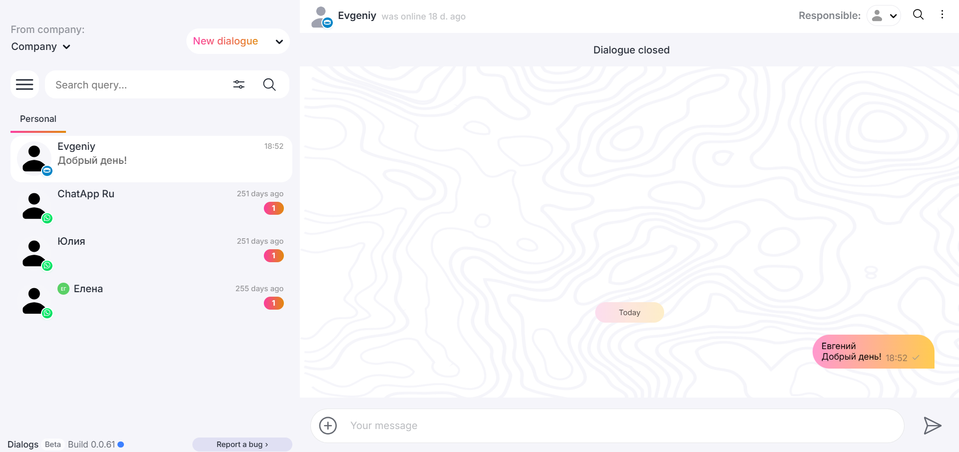 4. В карточке появится пункт «ChatApp Dialog». При нажатии «К диалогу», окно с ChatApp Dialog откроется в новой вкладке.