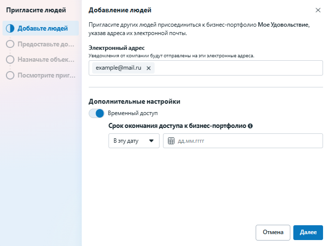 После отправки приглашения Meta направит сотруднику письмо на email, указанный на шаге 2 инструкции выше.