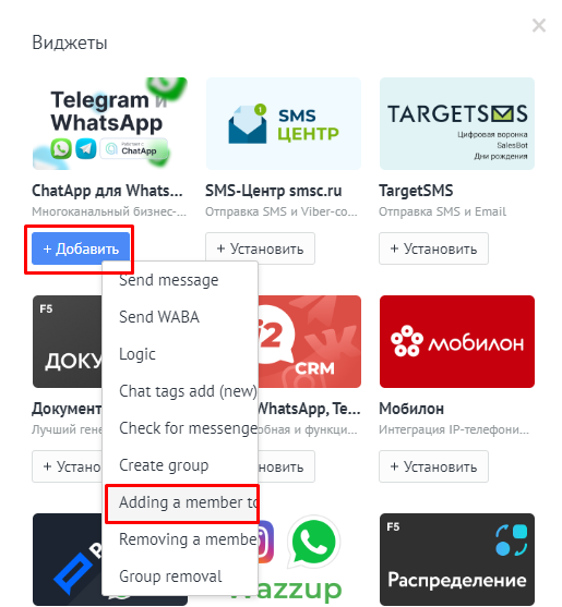 4. Выберите виджет ChatApp → Adding a member to the group