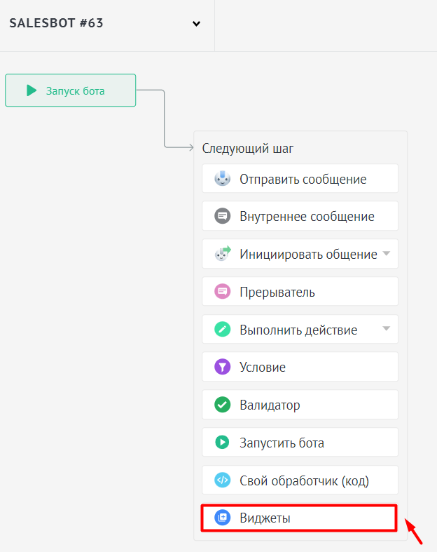 3. Следующий шаг бота выберите — виджеты: