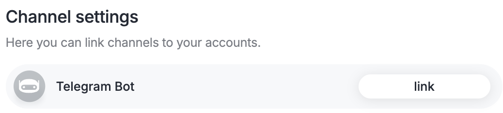 Done! After connecting, the Telegram Bot username will be displayed next to the channel.