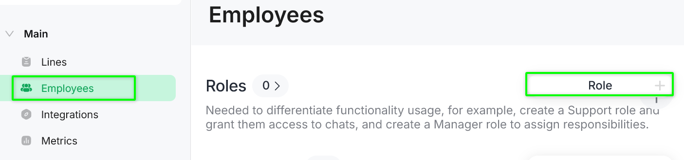 Step 1. Go to «Main → Employees» and click «Role +».