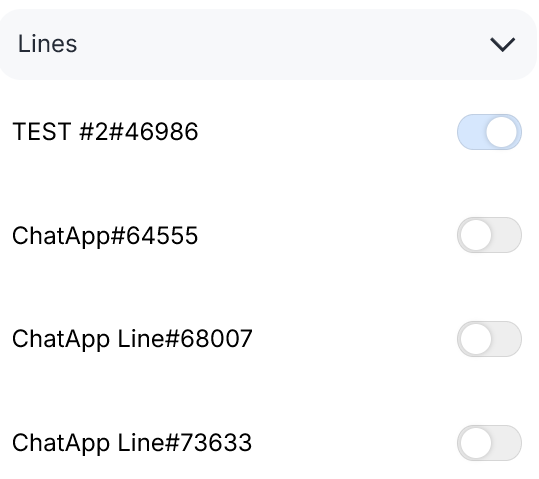 This tab displays a list of lines connected to the project. You can grant the employee access to all lines at once, select several lines, or choose only one.