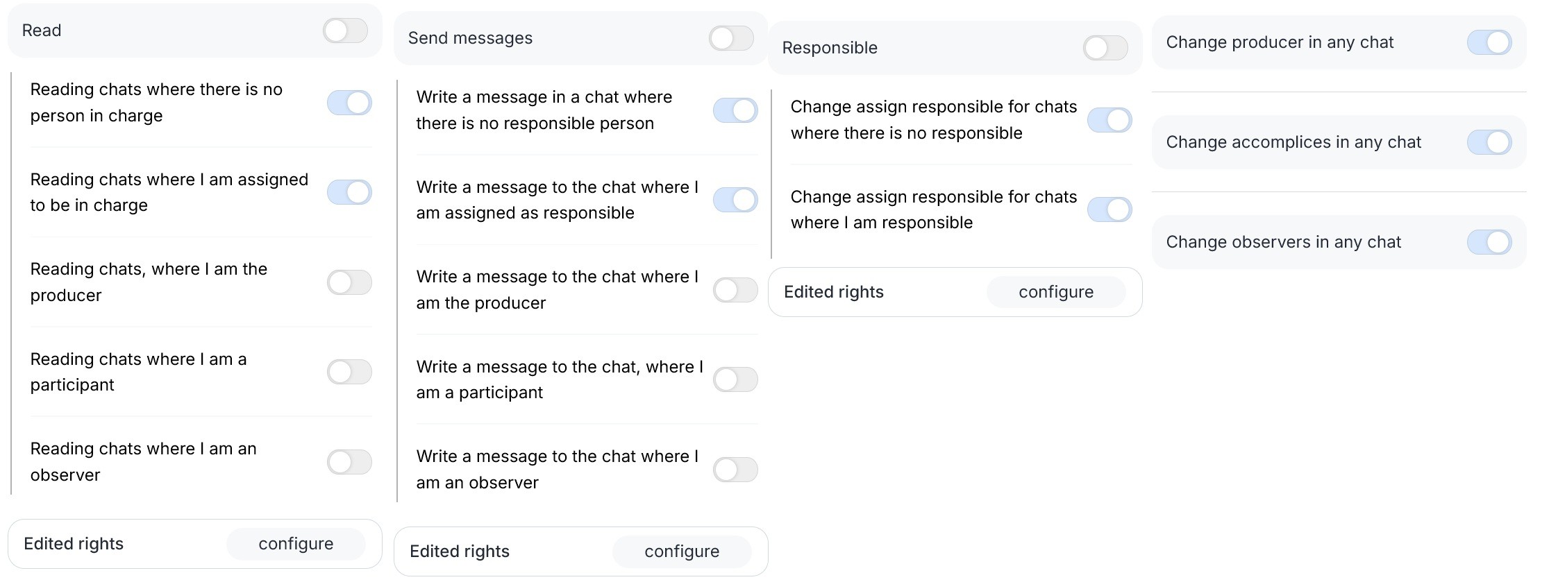 - Observer — an additional role with permission to view chat information.