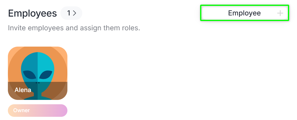Step 1. Go to the «Employees» section and click «Employee +».