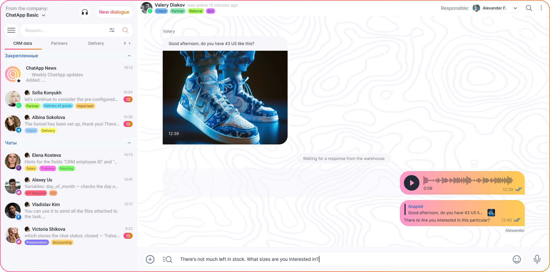 ChatApp Dialogs is a service that combines communication with clients from different messengers, social networks and CRM into a single window. It allows you to respond to users’ requests in a single interface. It is a standalone application that can be used without integration into CRM systems.