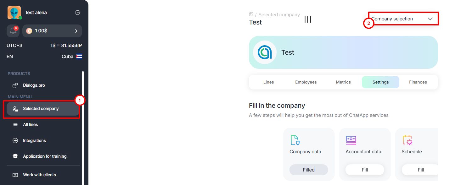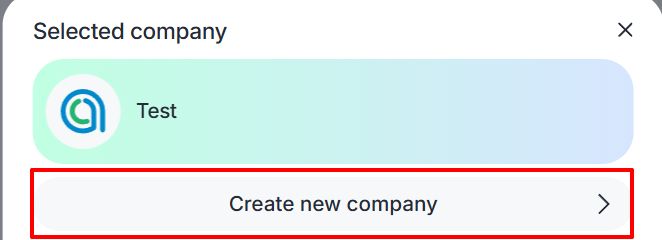 2. Click on Company Selection and in the pop-up window select Create a new company.