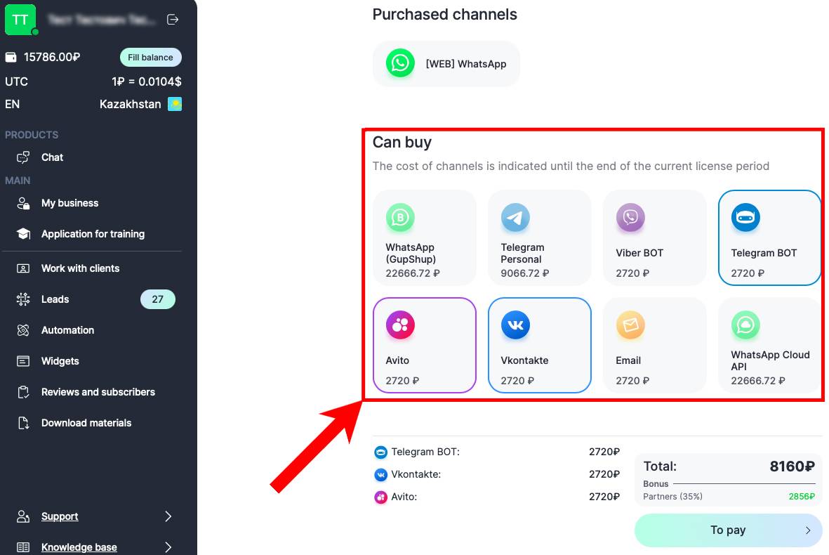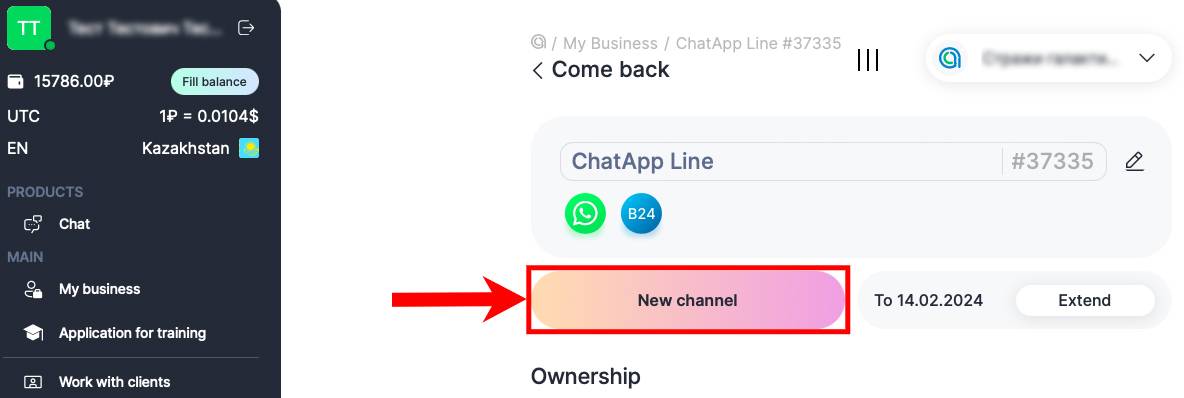 If you have not purchased a channel for a line, you do not need to create a separate line for it. In your ChatApp personal cabinet, you can purchase missing channels for the line. You can do this by:
