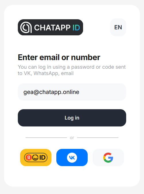 9. Confirm your login using the code from your e-mail or text message. Check the boxes to agree to ChatApp’s terms and conditions and data processing policy.