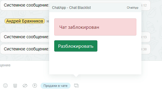 - Open the bottom functional menu and select “ChatApp – Chat Blacklist” from the list. If the item is not in the list, then you need to reinstall the ChatApp application.
