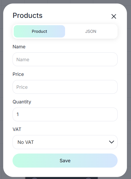 - VAT — select the VAT rate or without VAT.