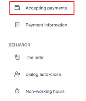 The block saves authorization data, stores a list of payments, initializes the payment, and returns the payment link and payment results. To use the “Accepting payments” block, you must first enable the payment system in the company settings.