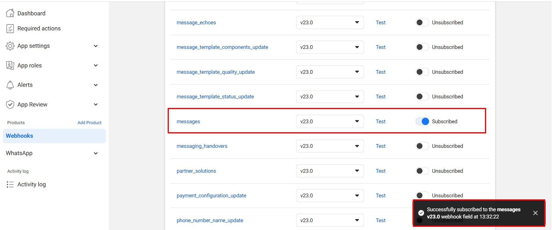WhatsApp Cloud API connection