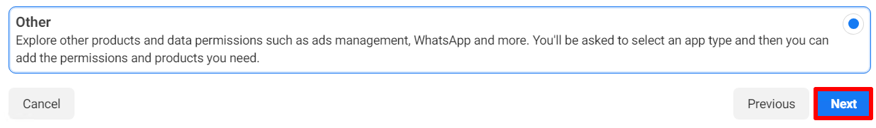 Important: if you have already created an application with a connected number and it is linked to a business portfolio to which you need to connect another number, do not create a new application. This will cause duplicate messages to both numbers authorized in the ChatApp account. Connect the number to the already created application.