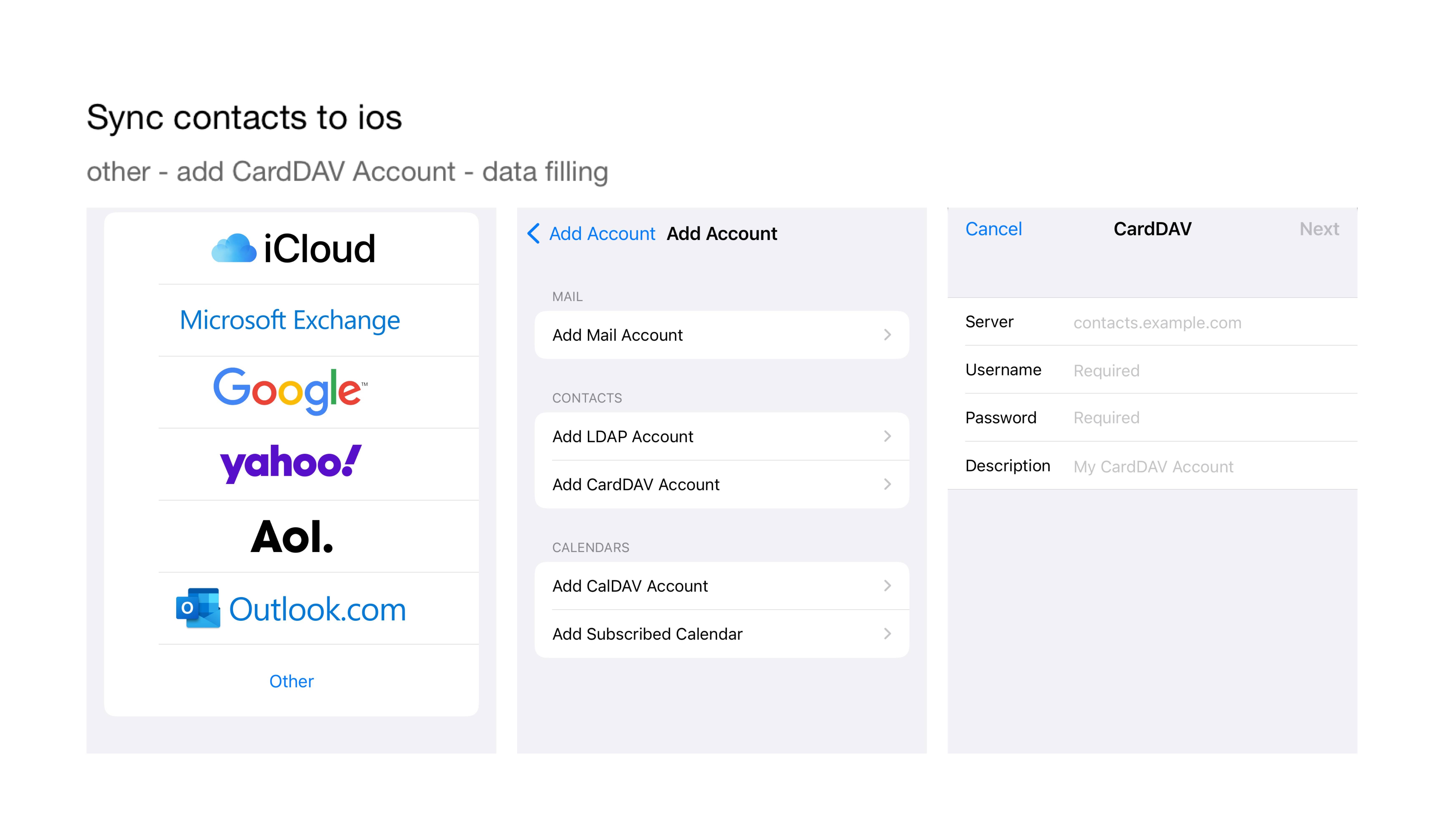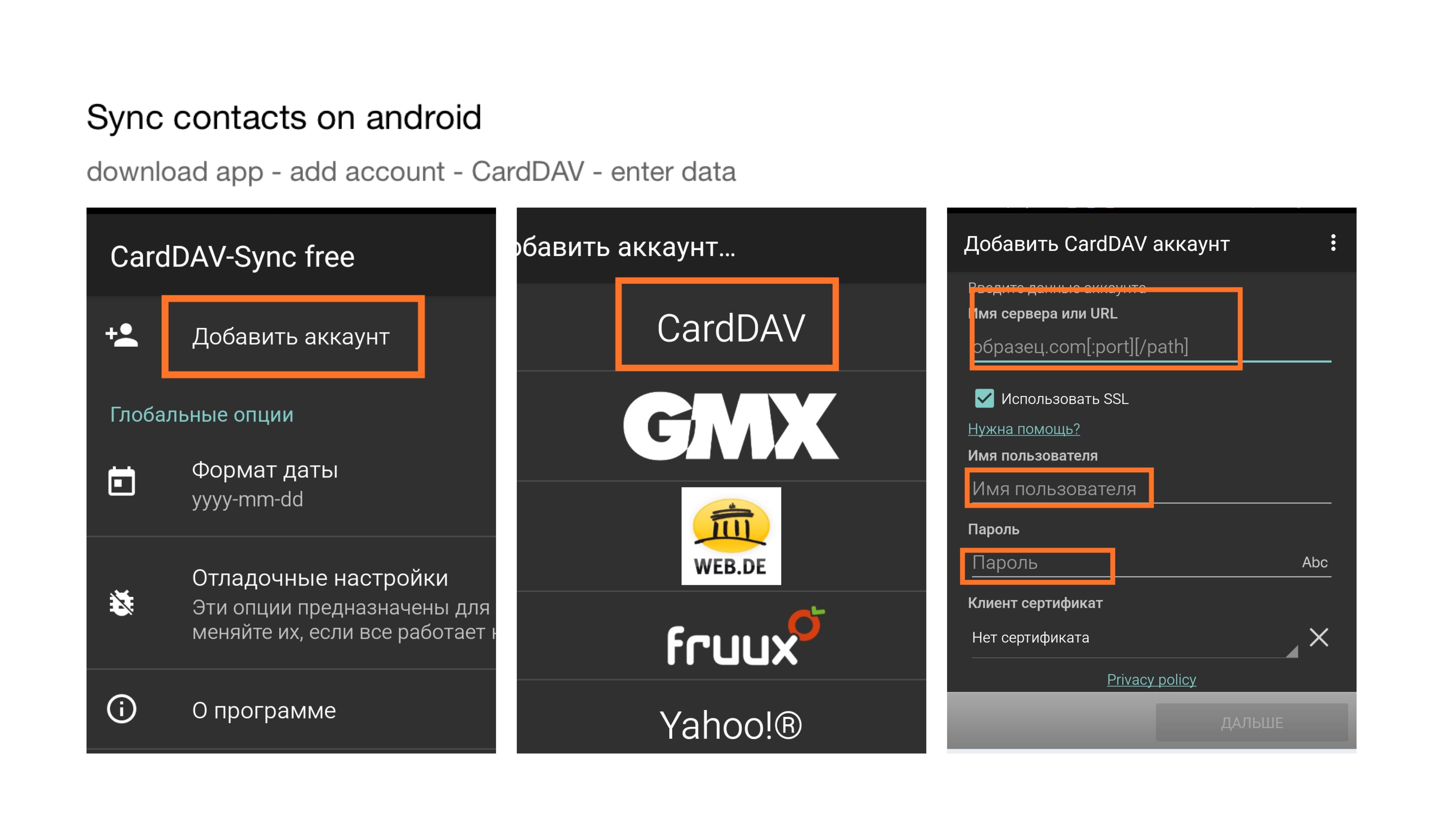 - On an android mobile device, you can sync contacts with CardDAV.