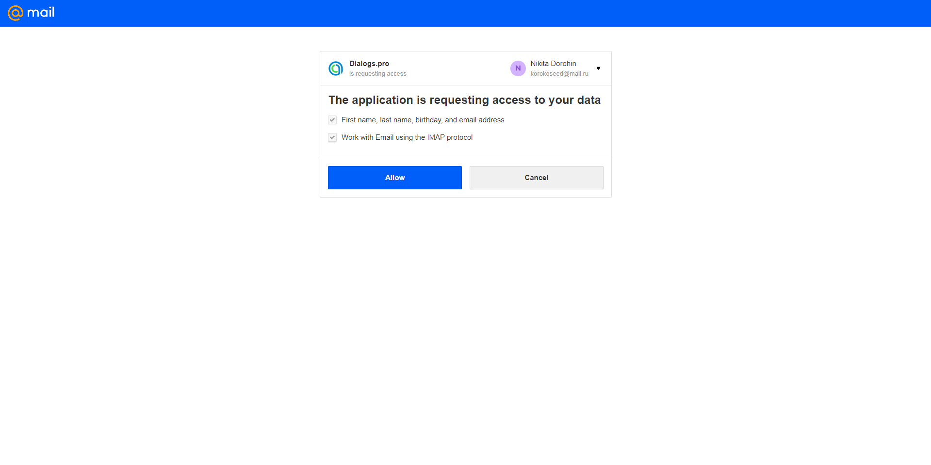 2. Click on Mail.ru and To authorize;