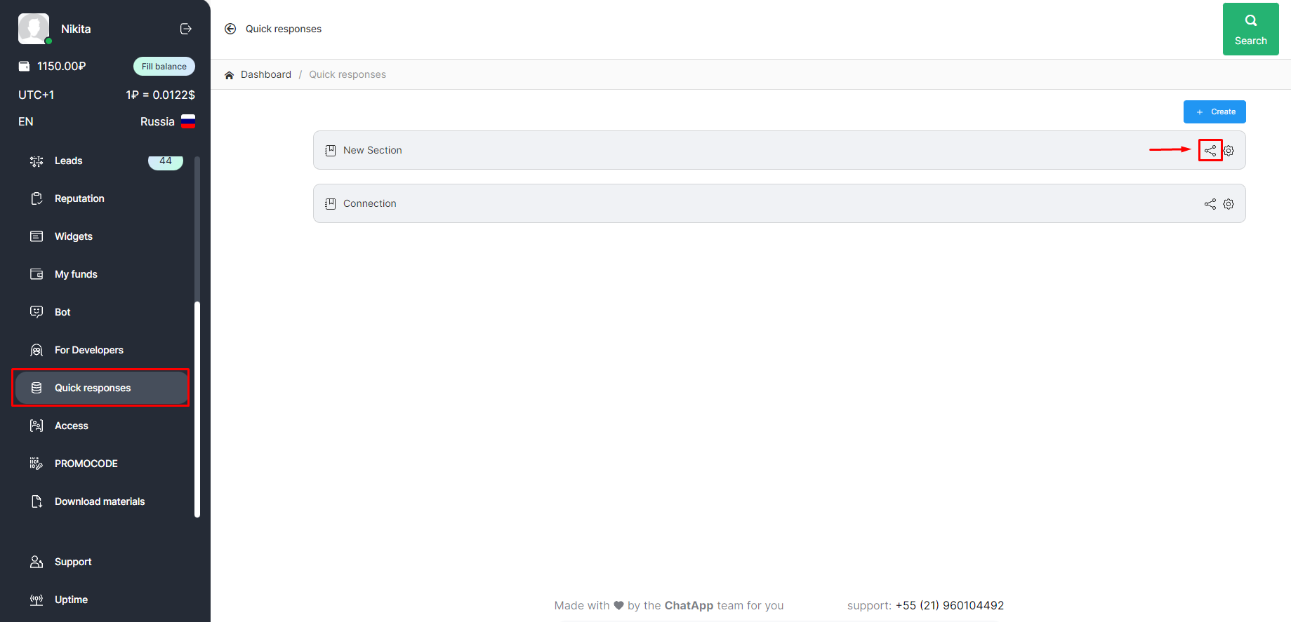 Click on the “share” icon in the created section to which you want to give access.