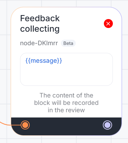 The “Feedback Collection” block gathers user feedback during chats and saves it in the “Feedback” field within the “Metrics” section. This block is useful, for example, for evaluating the performance of technical support specialists.