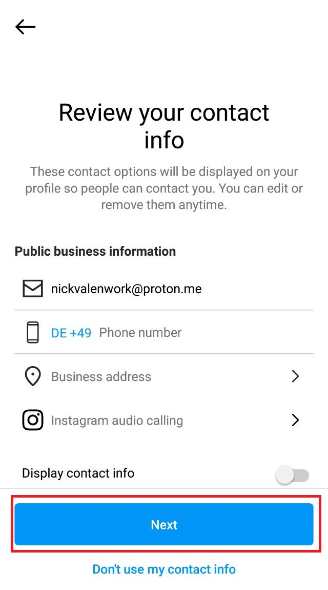 7. Check the contact information, and click “Next”.