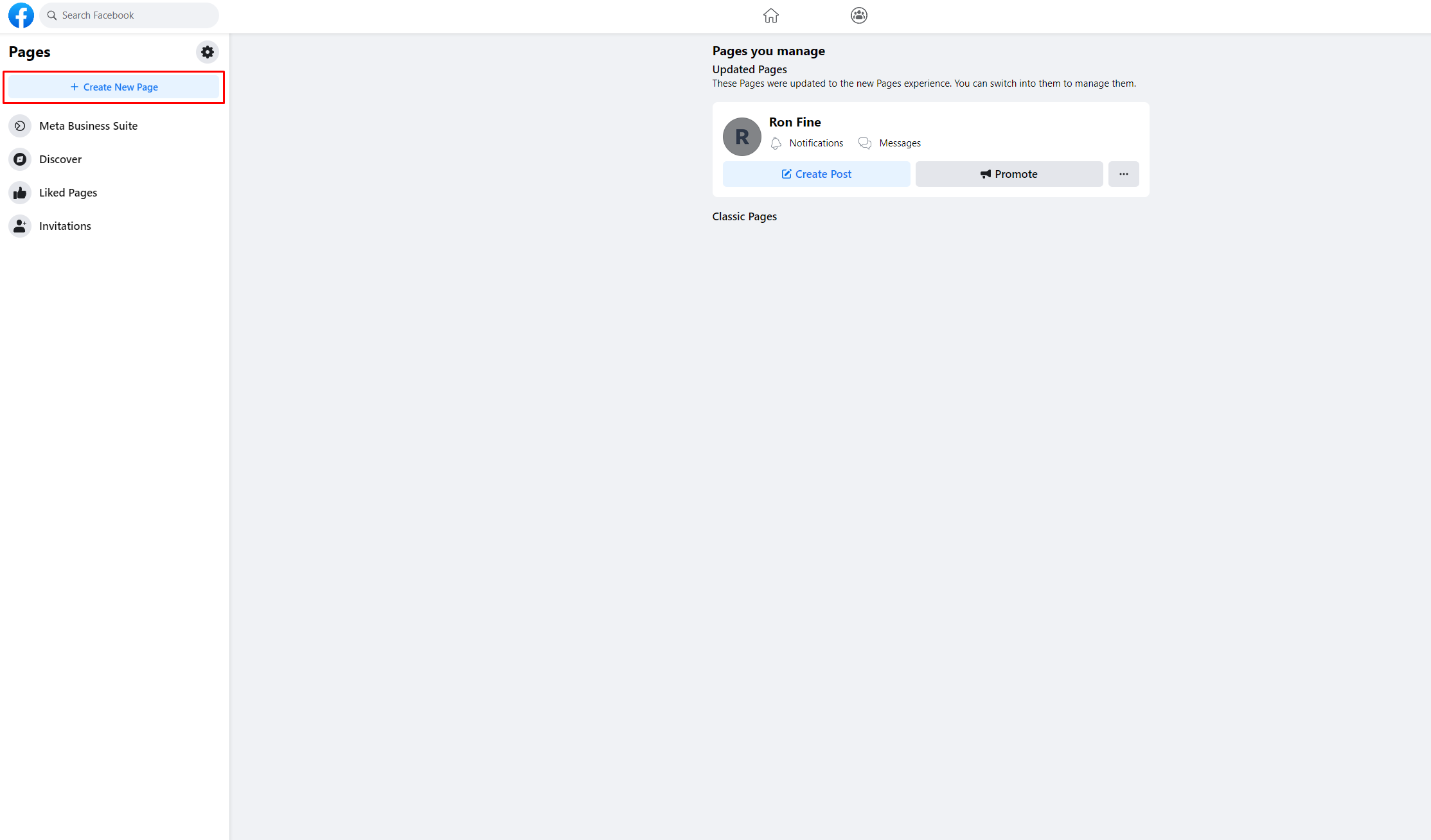 1. Go to the “Pages” section on the left side of your Facebook profile.