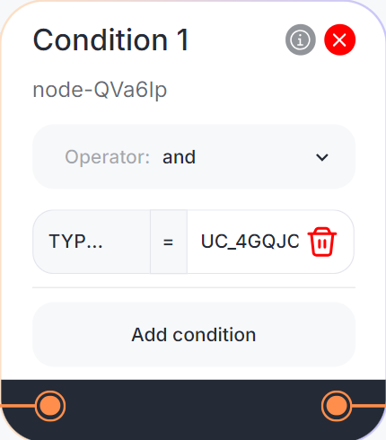 16. Create a «Condition» block and set up a check that TYPE_ID contains «personnel reserve» – insert its ID into the field on the right.