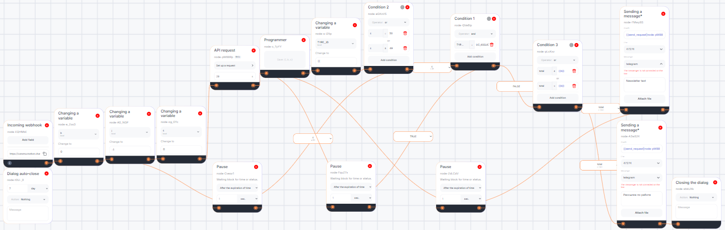 - After this block, add a «Close Dialog» block and connect them so that the script completes its work.