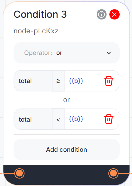 21. Add another «Condition» block: total<b or total≥b. This is necessary to check whether the check has reached the end of the mailing.