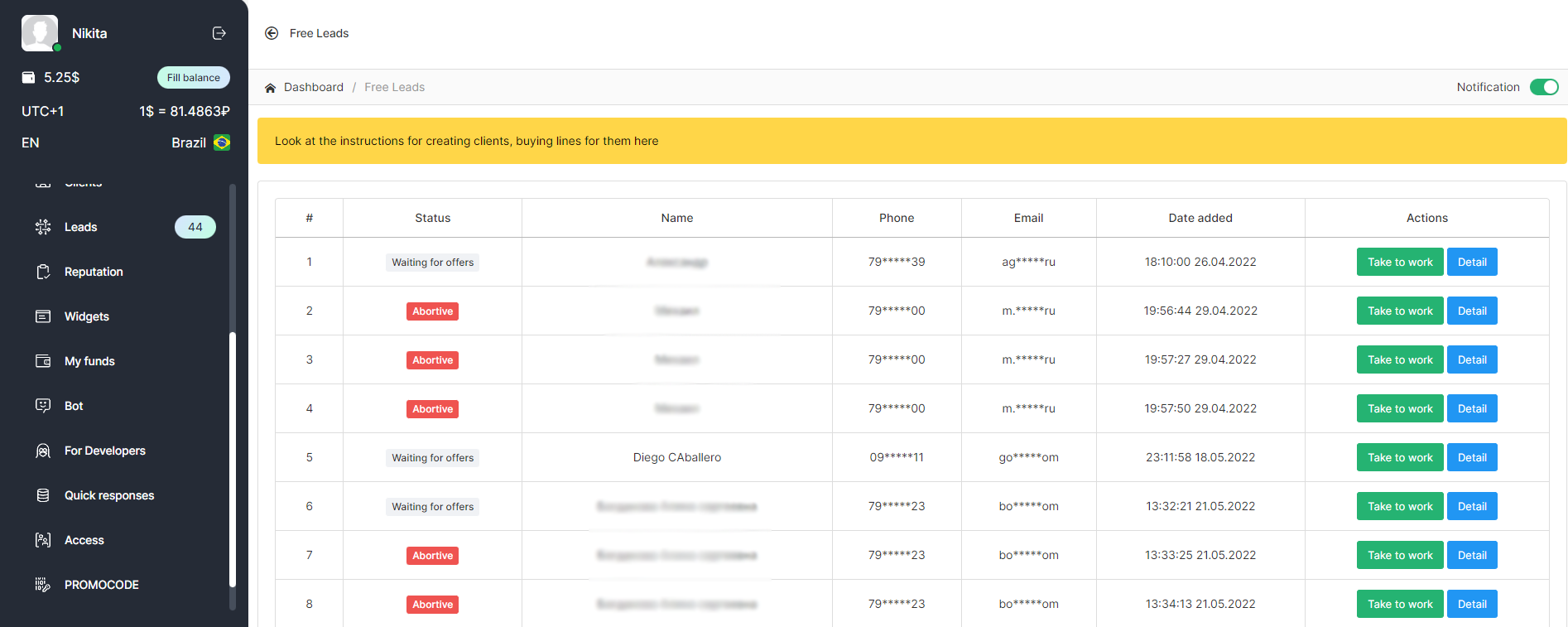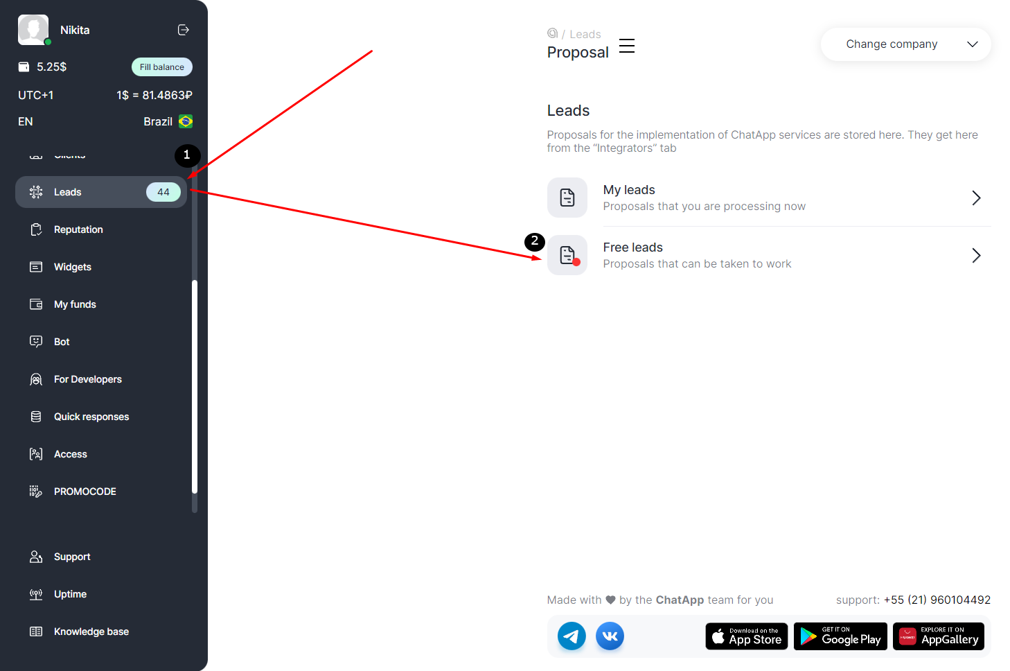 1. To view free leads, go to the «Leads» section.