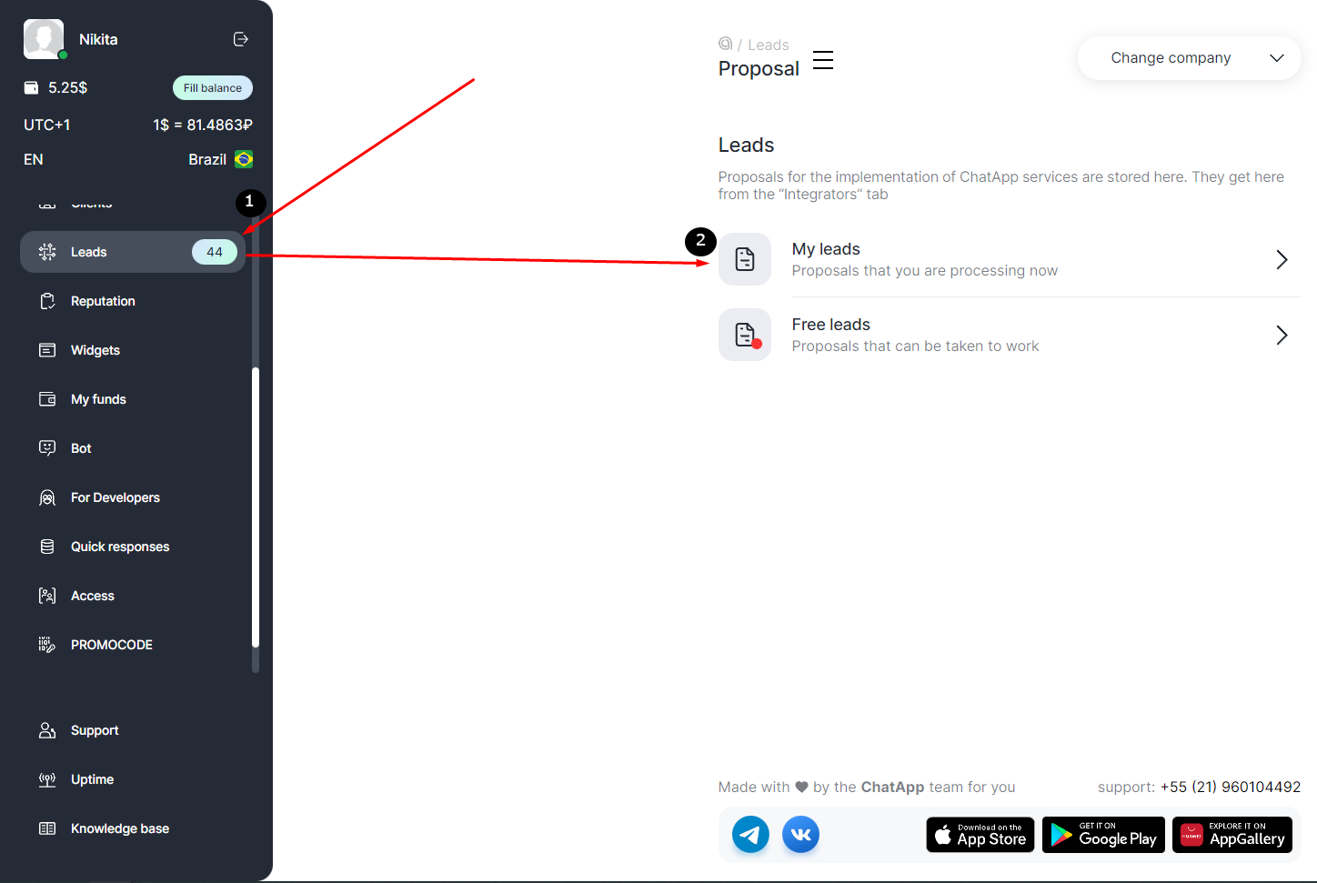 - All further work with the application is carried out in the section «My leads».
