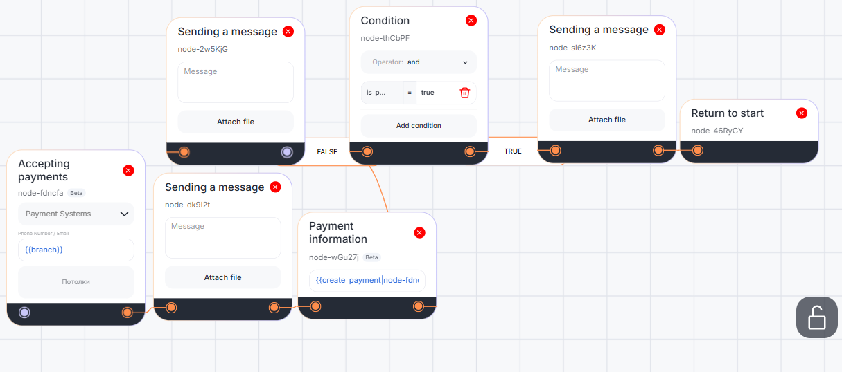 The block can be used, for example, in a scenario with payment acceptance. The “Payment Information” block will receive information – whether the payment was successful or an error occurred. If the payment was successful, the bot will send a notification that a manager will contact the client. If the payment was not successful, the client will also receive a notification.