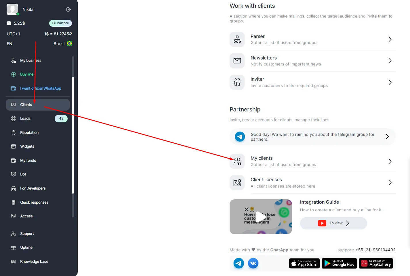 3. Everyone who uses it to register in their personal account will appear in the “My clients” menu section.