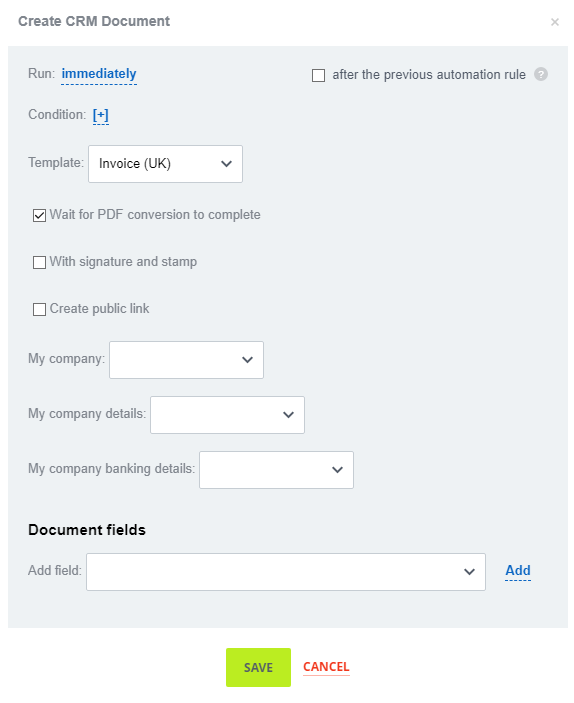 Automation rules – Send document CRM