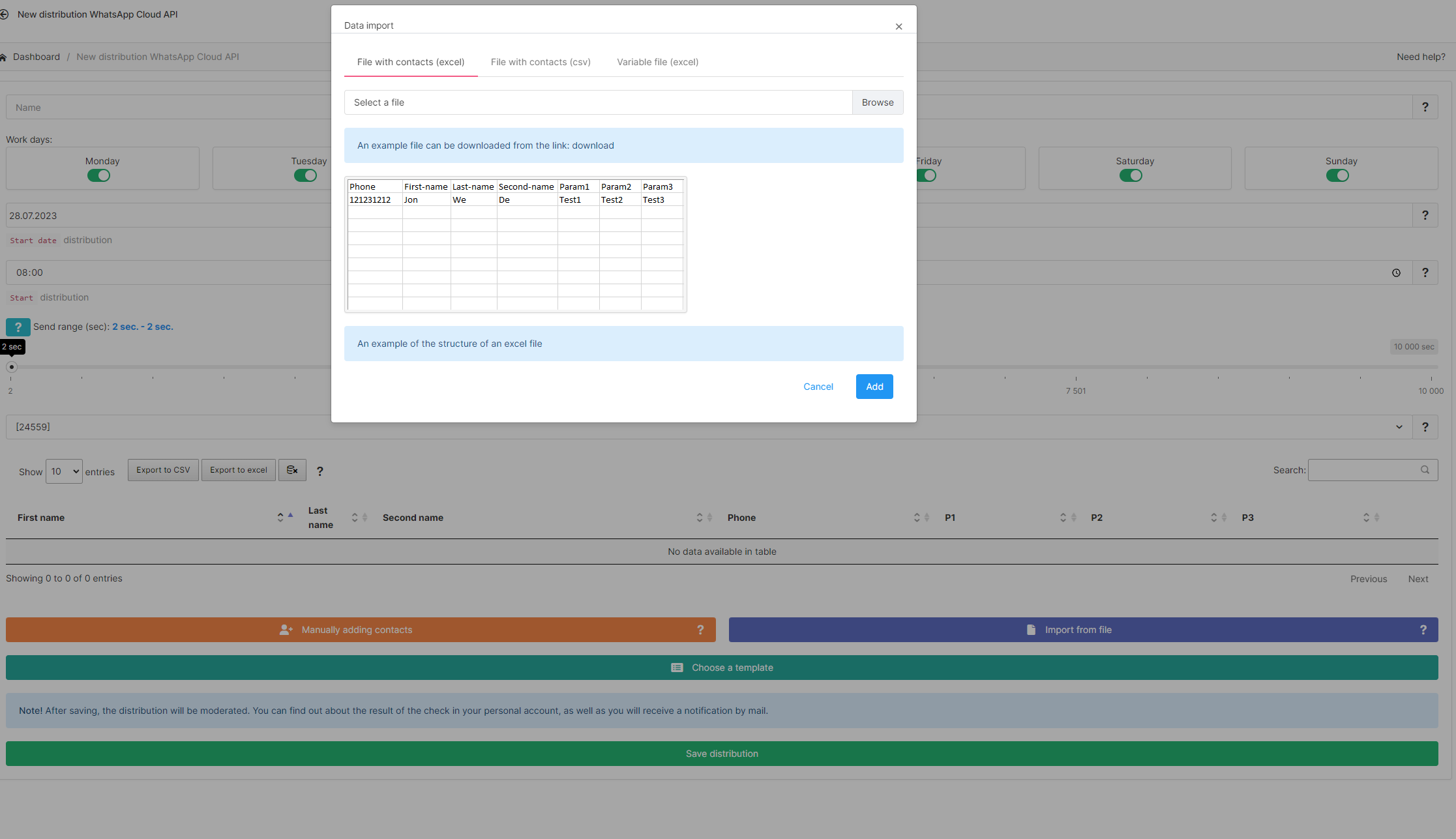 5. Below you need to enter the text of a message which will be sent to the contacts from the distribution list.