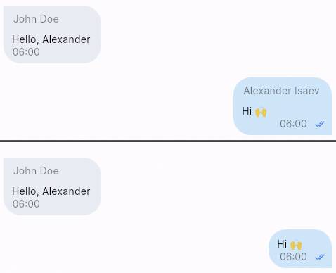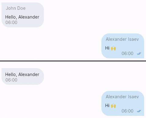 Sender name. Displays the username above the text of each message.