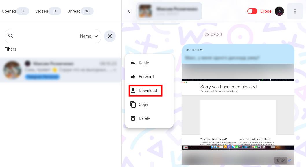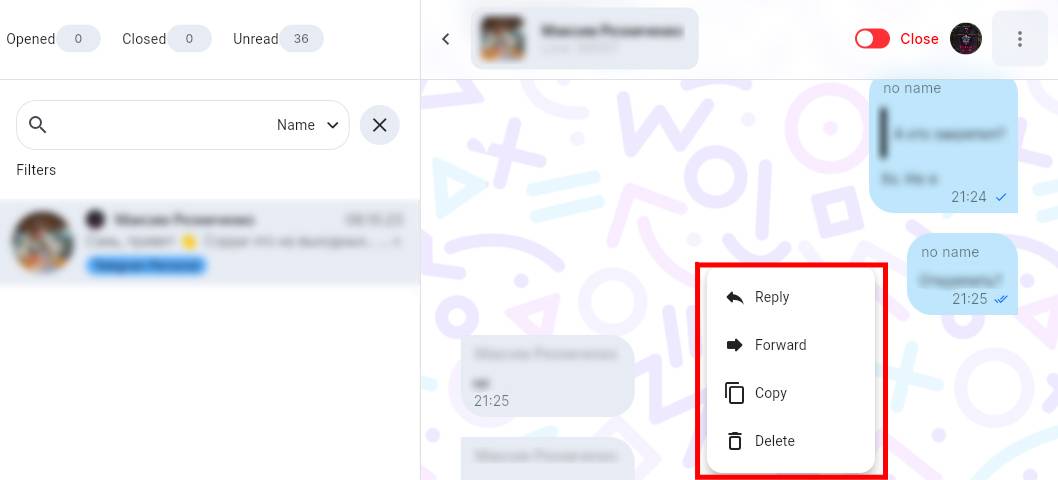 Dialogs.pro allows you to copy, forward, delete messages, and also reply to them using special navigation buttons. To use this feature: