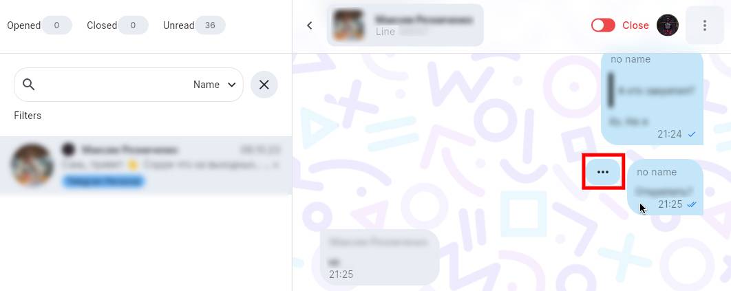 Responsible for the dialogue. The dialogue card displays the avatar of the responsible employee. The avatar duplicates the functions of the “Menu” button from the dialog window.