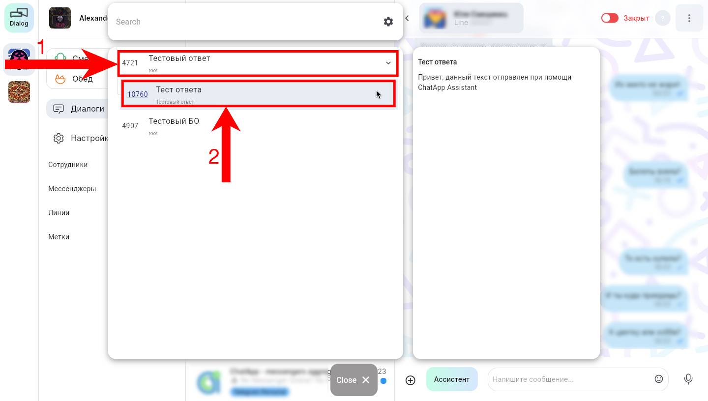 4. In the window that opens, select the desired section, and then the quick answer itself;