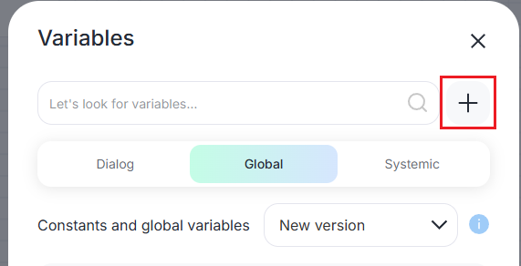 1. Go to the “Variables” section in the upper right corner of the window and press “+”.