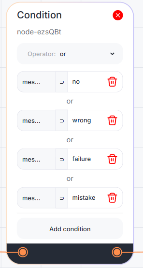 Specify the necessary words in the “Condition” block, and when you receive them, the system will perform the action specified for this condition.