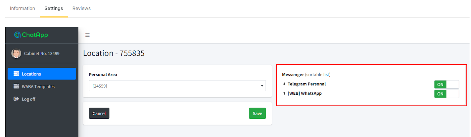 In the ChatApp integration settings, you can change the priority messenger where messages will be delivered. The first messenger on the list has the highest priority.