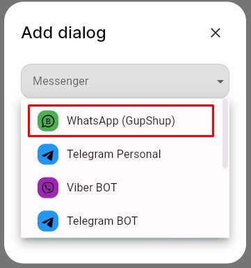 2. In the “Add dialog” window, in the “Messengers” field, select the messenger.